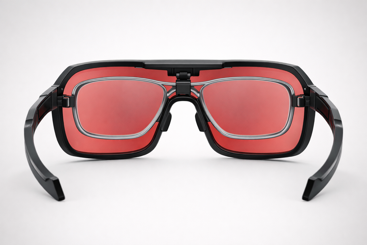 L’insert optique RUN•AKTIV™ est conçu pour s’intégrer parfaitement à l’intérieur du modèle APEX, permettant l’ajout de verres de prescription tout en conservant le design aérodynamique et la stabilité des lunettes.